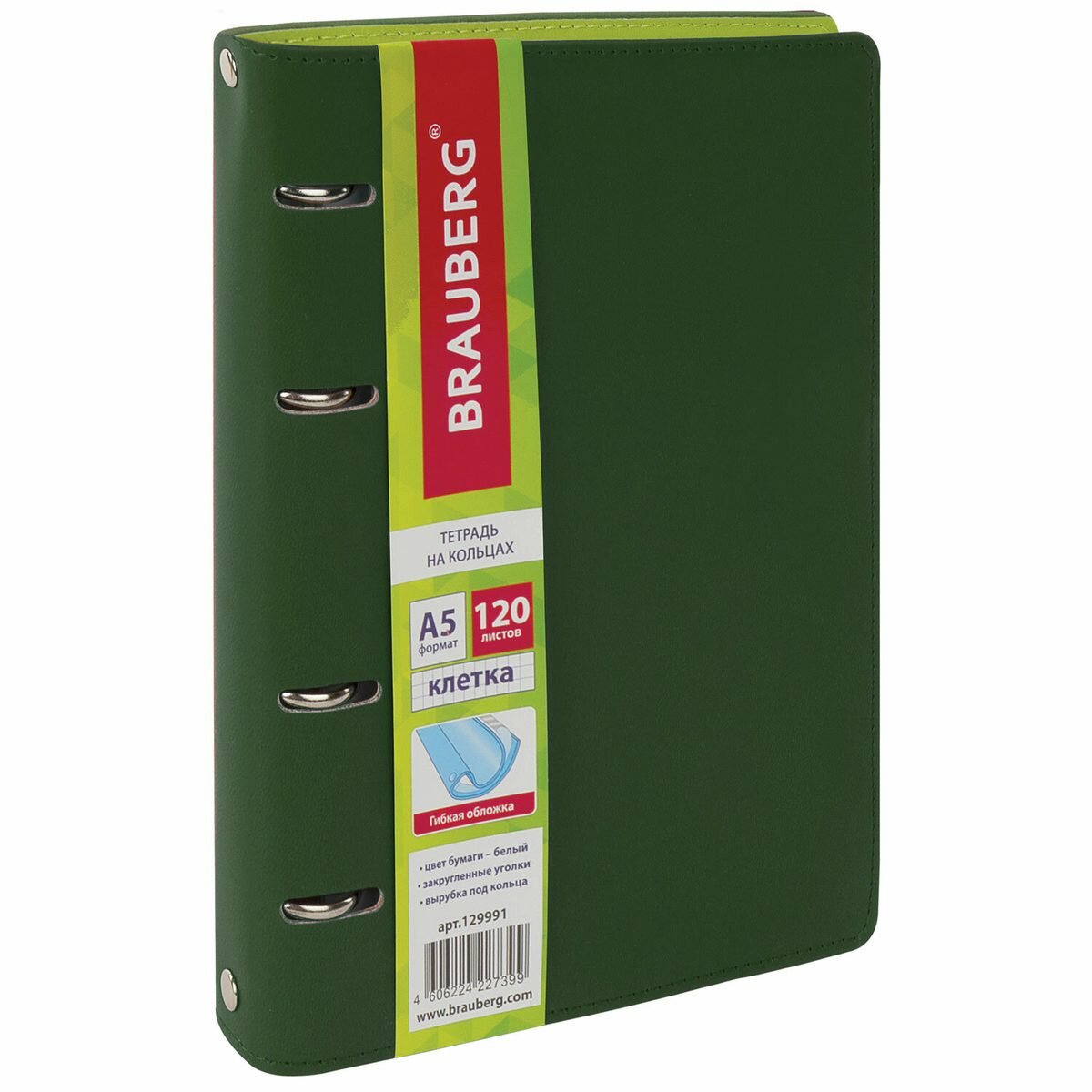 Купить Тетрадь на кольцах 120л, А5 Brauberg «Joy», клетка, кожзам «под фактурную кожу», зелёный/светло-зелёный, 180х220мм (129991), 30шт. с доставкой по всей России.