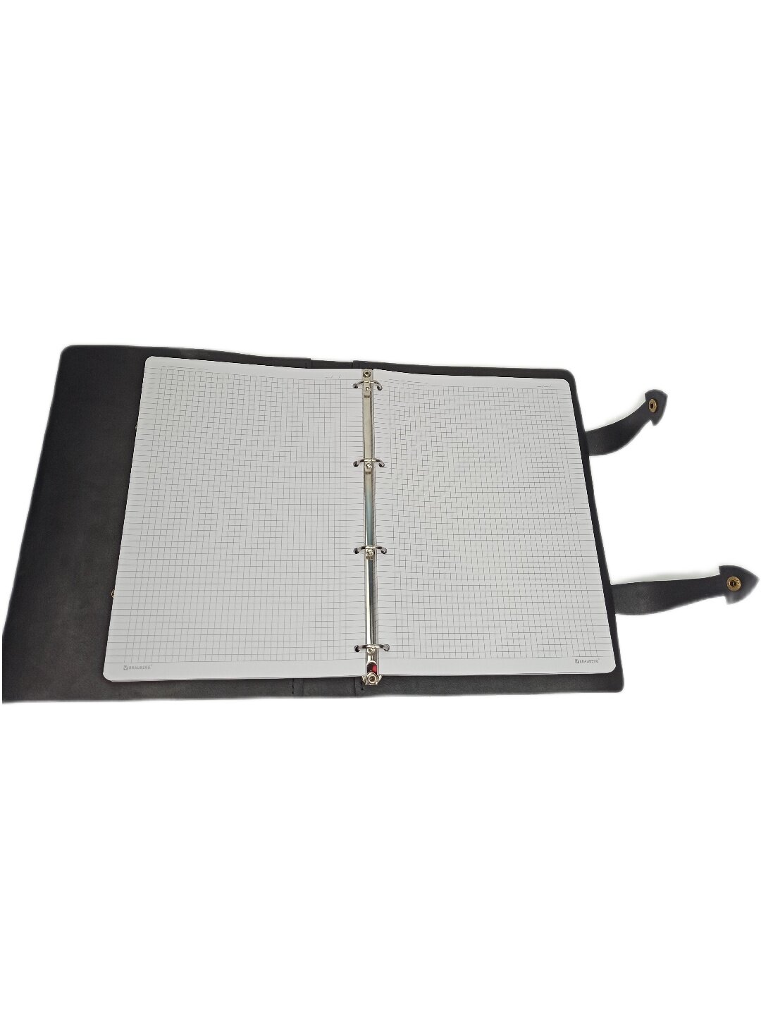 Тетрадь имеет лаконичный дизайн, а застежки-хлястики с кнопками обеспечивают удобство использования. Формат тетради А4 позволяет удобно хранить и переносить ее с собой. Кольцевой механизм на 4 кольца позволяет легко добавлять и заменять блоки или использовать пластиковые файлы. Расстояние между кольцами составляет 80 мм, что делает тетрадь удобной для использования и позволит легко подобрать сменный блок.