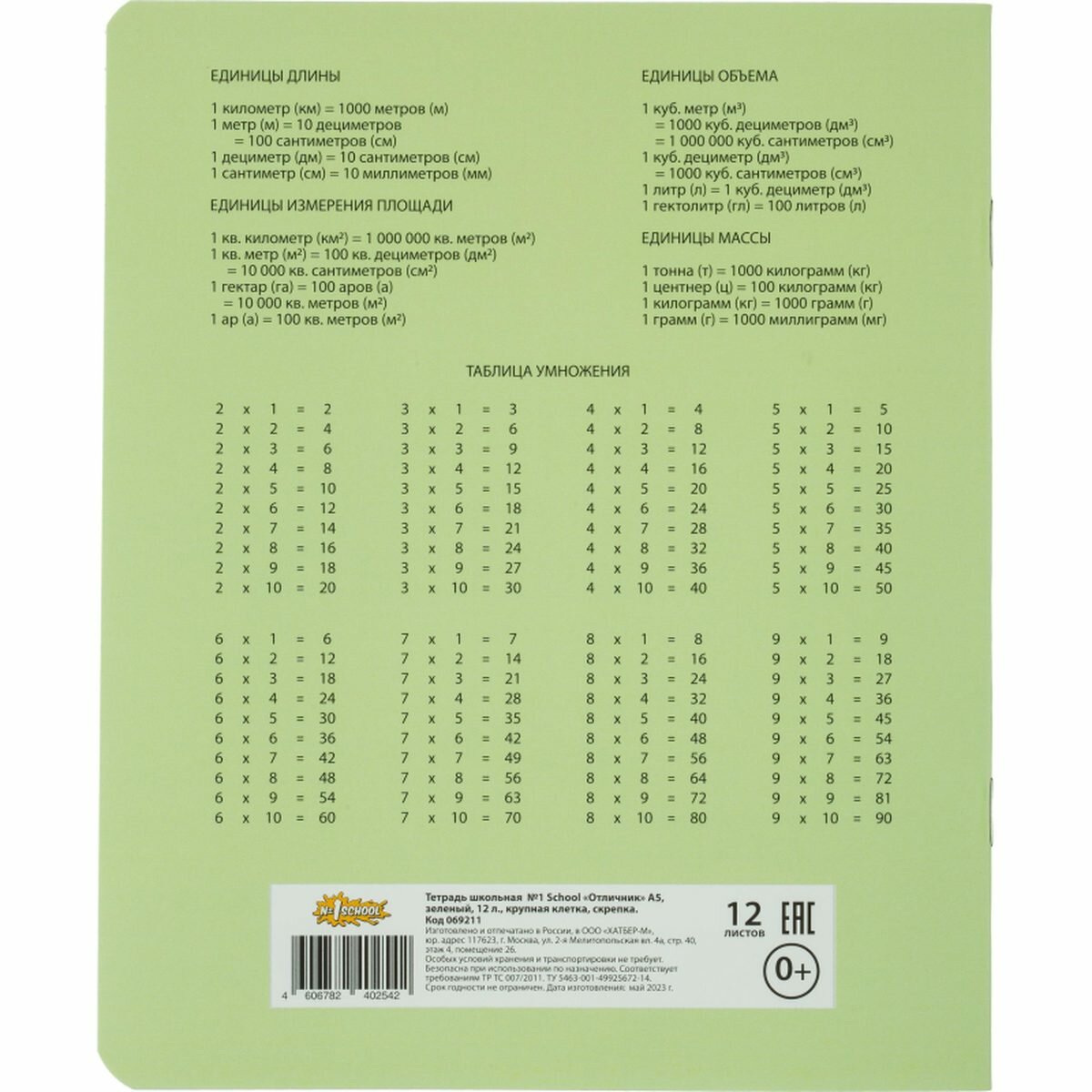 Тетрадь школьная 12л, А5 №1 School Отличник (крупная клетка, зеленая обложка) 10шт, 28 уп.: сравнение цен, характеристики, фото, актуальное наличие и цены.