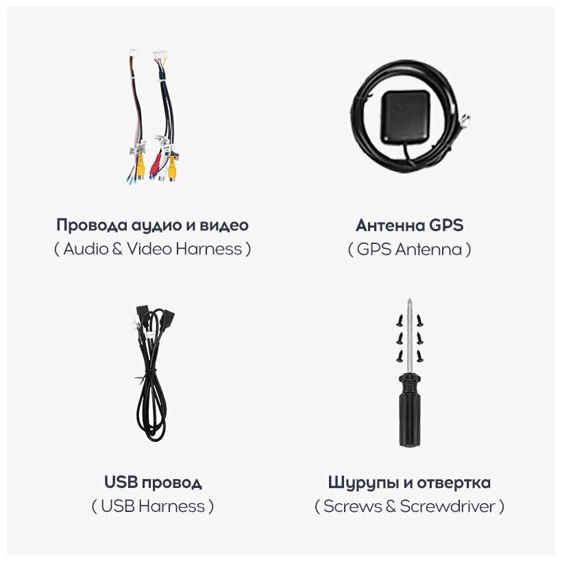 | Подробная комплектация | Планшет 9 дюймов, провода аудио-видео, антенна 4G, антенна GPS, USB провол, шурупы и отвертка, упаковка. |