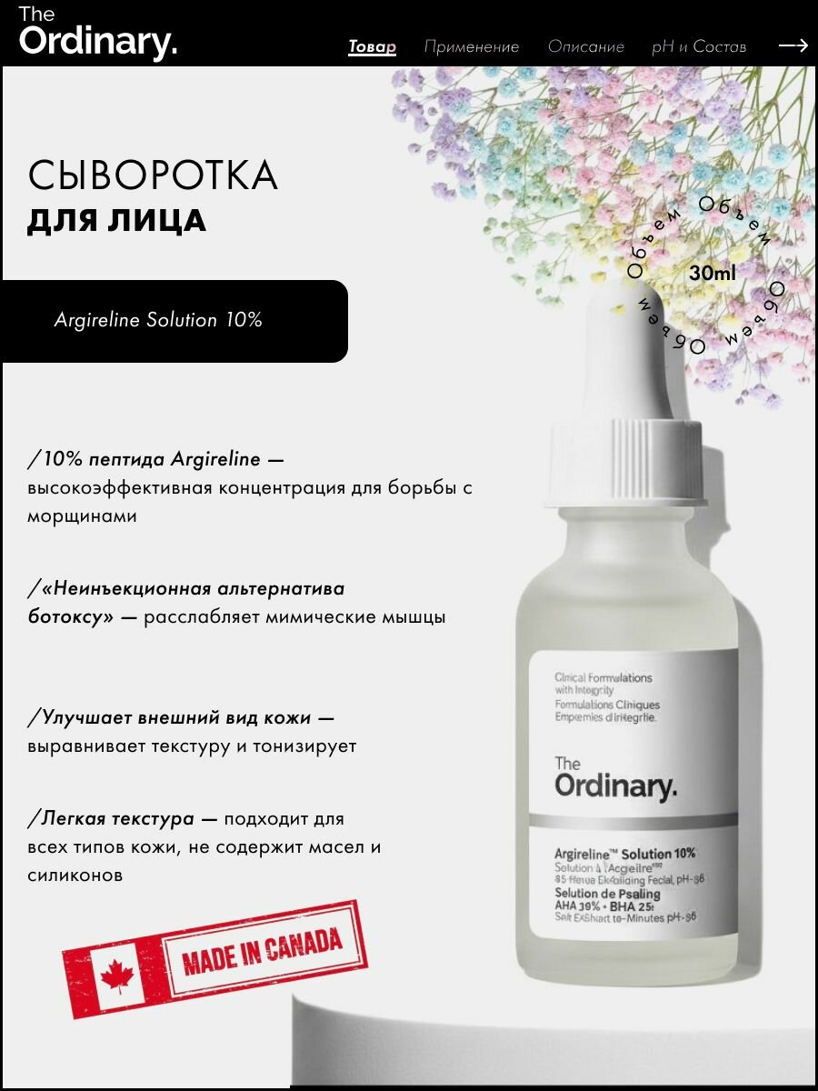 Сыворотка для лица с лифтинг-эффектом The Ordinary Argireline Solution 10% / Антивозрастная пептидная сыворотка с эффектом ботокса / Подтягивает и разглаживает кожу. Объем 30 мл: сравнение цен, характеристики, фото, актуальное наличие и цены.