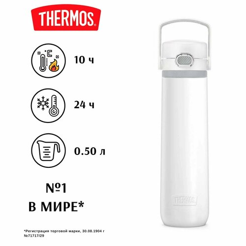 Беззаботная прогулка в парке или по городу, путь на работу или в институт, поход в горы или автопутешествия, занятия в фитнес-центре или на свежем воздухе будут намного приятнее с термокружкой серии GUARDIAN. Новая модель термокружки в стиле спорт-шик сочетает в себе комфорт и оригинальный внешний вид. Современные тренды, на которые ориентируется компания-создатель первого в мире термоса, отражаются в динамичном дизайне и практичном функционале термокружки, предназначенной для ежедневного использования. Вне зависимости от условий окружающей среды, в жару и в холод, напитки в вашей термокружке сохранятся горячими не менее 10 часов или холодными в течение суток. Поддержание нужной температуры внутри термоса обеспечивается за счет технологии глубокой вакуумной изоляции THERMOS®, конструктивных особенностей и материалов премиум-класса, используемых при его производстве. Корпус и колба из пищевой нержавеющей стали 18/8 AISI 304 Stainless Steel отличаются прочностью и термостойкостью. Сталь не вступает в химические реакции с содержим, сохраняя вкус и аромат напитков. Крышка-пробка производится из современного пищевого пластика, который не содержит бисфенол А (BPA free), устойчив к механическим повреждениям и к воздействию высоких температур. За герметичность термокружки отвечают прокладка и уплотнитель из долговечного и гигиеничного пищевого силикона. Все материалы экологические чистые, безопасные, не выделяют и не поглощают посторонние запахи. Визуальный эффект от дизайна термокружки дополняет приятное тактильное ощущение от её покрытия, созданного с помощью специальной технологии порошкового напыления, а эргономичная форма создаёт удобство при удержании термокружки в руке. Динамика дизайна находит своё продолжение в динамике использования благодаря особой конструкции крышки-пробки. Из термокружки можно пить даже на ходу – её легко открывать одной рукой, достаточно нажать на кнопку, и верхняя крышка откидывается, автоматически фиксируясь в открытом положении, и не опрокидывается при питье. Плавный поток напитка создаёт особая форма поильника и небольшое выливное отверстие, что делает термокружку идеальной для горячих напитков. Блокировочное кольцо защищает от случайного открывания термоса и проливания жидкости. Рельефный пояс у горловины термокружки добавляет удобства при её открывании для заполнения любимым напитком. Функциональности термокружке добавляет наличие ручки с мягкой накладкой из эластомера - её удобно носить в руках или прикрепить к рюкзаку. Компактные размеры позволяют размещать термокружку в велосипедном держателе или автомобильном подстаканнике. Матовое покрытие отличается практичностью и прочностью, поэтому термокружку можно мыть в посудомоечной машине. Современная и надёжная термокружка легендарного бренда THERMOS является эко-альтернативой пластиковым и бумажным стаканчикам. По всем своим характеристикам термокружка соответствует Международному стандарту качества EN12546:1-2000. характеристикиобъем 0,5 лВес изделия 0,220 кгВремя сохранения тепла 10 чВремя сохранения холода 24 чМетод изоляции вакуумРазмер высота - 27,5 смдиаметр горлышка - 4,5 смдиаметр дна - 7,5 смТип крышки крышка-пробкаТип пробки винтовая, с откидным механизмомТип покрытия порошковоеЦвет белыйМатериалы корпус – нержавеющая сталь 18/8 AISI 304 Stainles