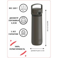 Функциональности термокружке добавляет наличие ручки с мягкой накладкой из эластомера - её удобно носить в руках или прикрепить к рюкзаку. Компактные размеры позволяют размещать термокружку в велосипедном держателе или автомобильном подстаканнике.