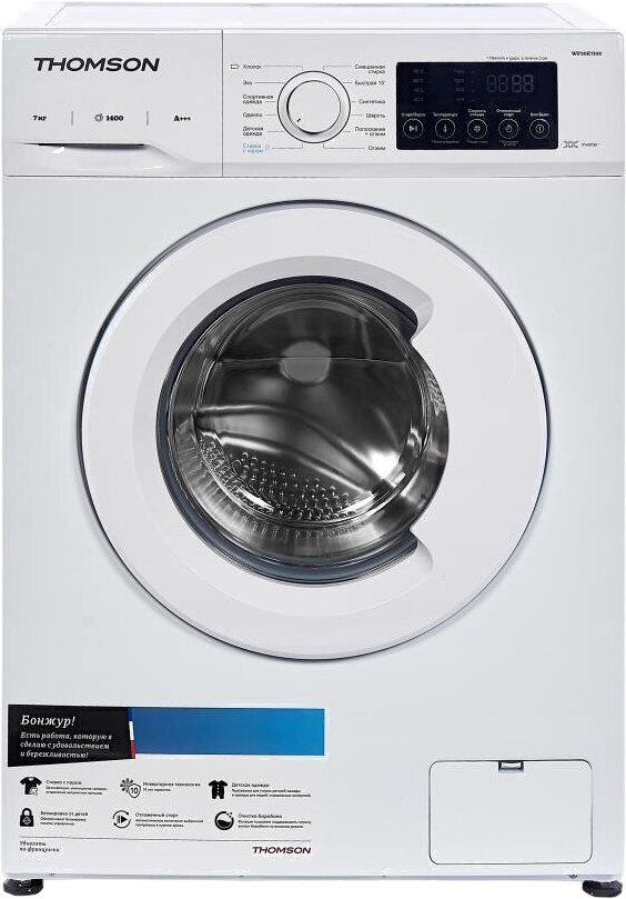 Купить Thomson WF30E7I02 Стиральная машина белая, загрузка фронтальная 7кг, 1400 об/мин, класс: A+++ с доставкой по всей России.