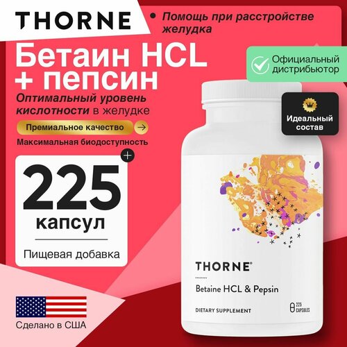 Thorne Betaine HCL & Pepsin — это комплексная формула для поддержки пищеварения, разработанная для содействия оптимальному расщеплению белка и усвоению питательных веществ. Эта добавка содержит бетаин HCL (соляную кислоту), помогающую активировать пепсин, ключевой фермент для расщепления белка. Это может улучшить пищеварение и усвоение питательных веществ из богатой белком пищи. Это может облегчить изжогу, вздутие живота и газы, связанные с низкой кислотностью желудка, и помочь поддерживать здоровый уровень кислотности желудка. Неразбавленный источник пепсина делает эту формулу подходящей для людей с непереносимостью лактозы. В упаковке 112 порций, размер порции — 2 капсулы.