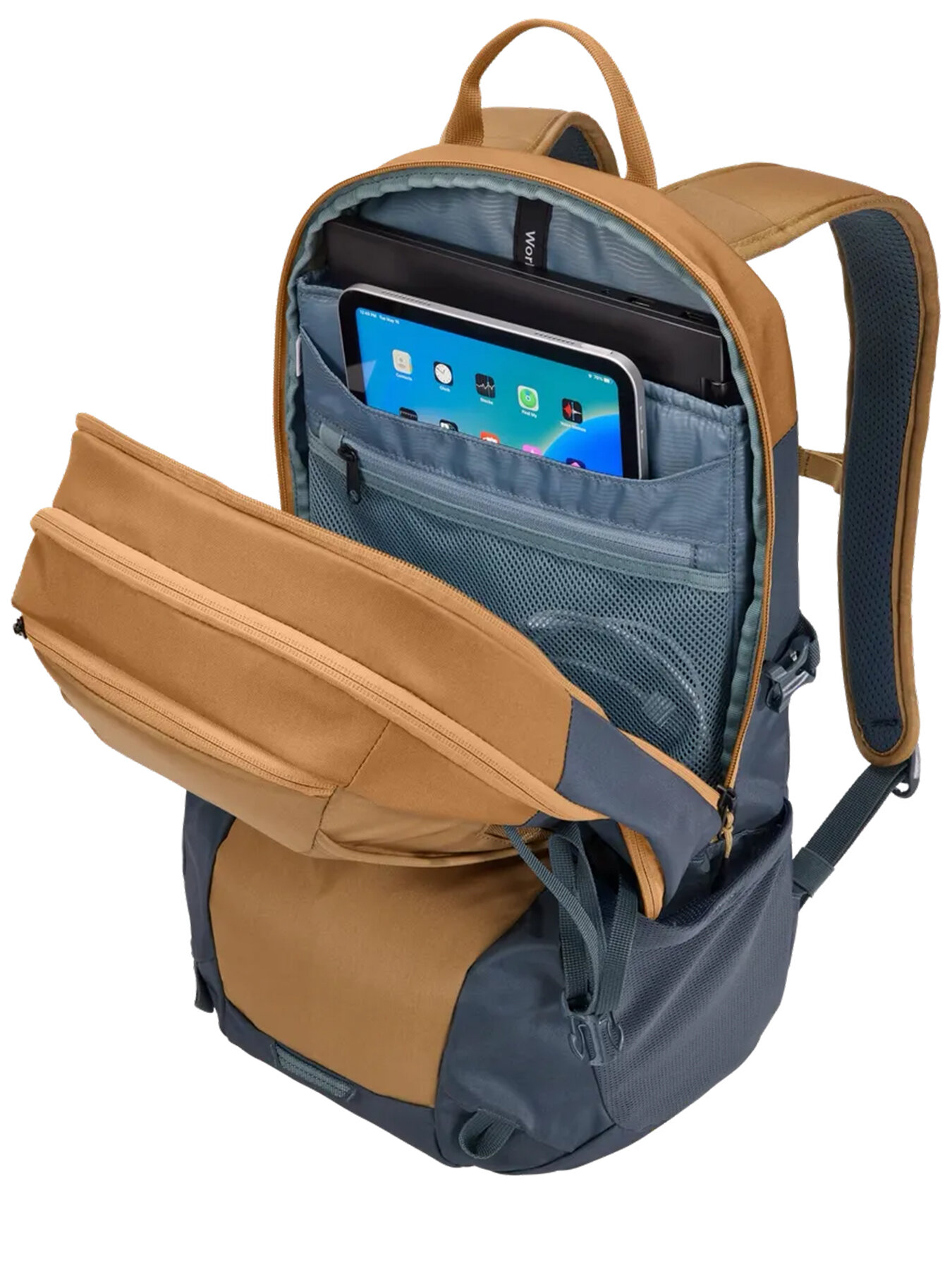 Внутреннее отделение с габаритами 38,5 x 26,5 x 3,1 см предназначено для ноутбука 15.6" и специальный карман - для планшета 10.5".