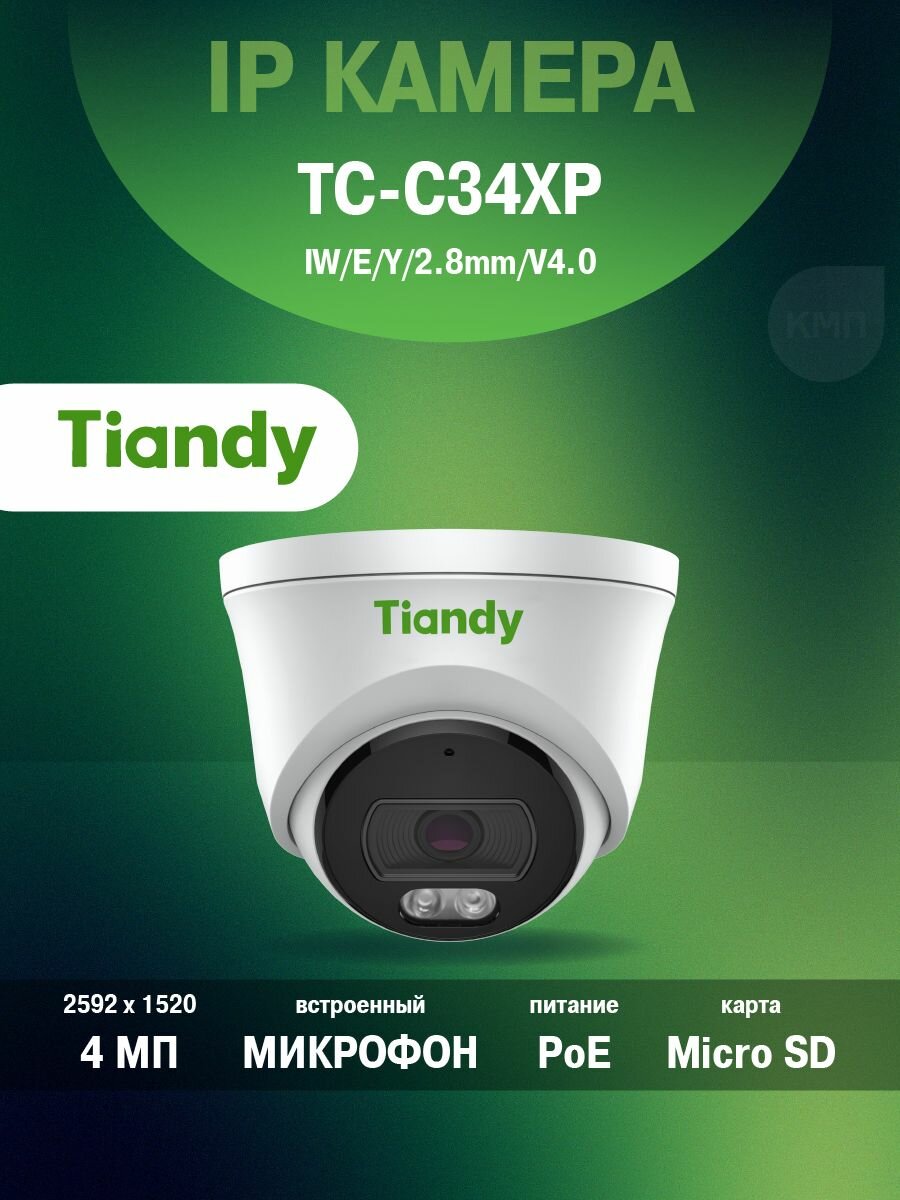 Tiandy TC-C34XP камера видеонаблюдения 4МП, питание PoE, микрофон, запись на карту памяти: сравнение цен, характеристики, фото, актуальное наличие и цены.