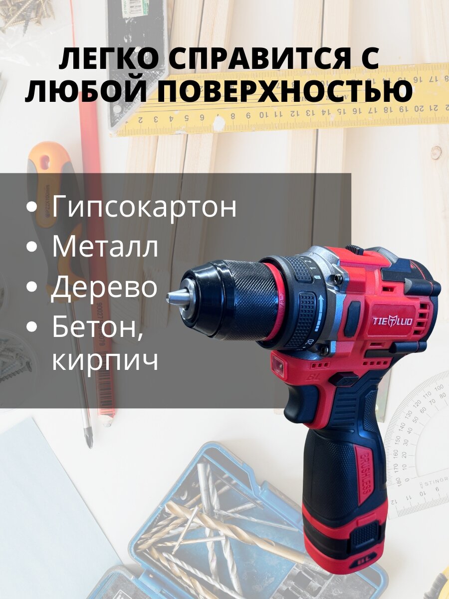 TIELLIO X21TD Шуруповерт бесщеточный аккумуляторный электрический дрель, 21В, 65Нм, 2 АКБ LI-ION, 4Ач