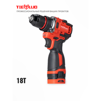 TIELLIO 18T шуруповерт аккумуляторный бесщеточный 18В, 55Нм, 2 АКБ LI-ION, 1.5Ач