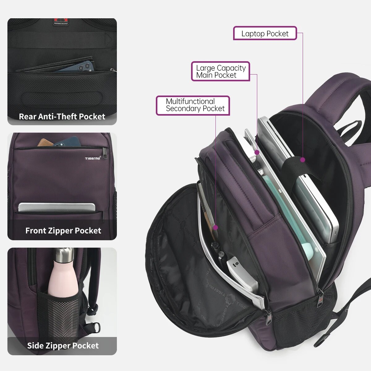 Tigernu модный женский рюкзак фиолетовый противоугонный 15,6-дюймовый рюкзак для ноутбука женский водонепроницаемый рюкзак для путешествий школьный рюкзак сумки 3032C Purple 15.6