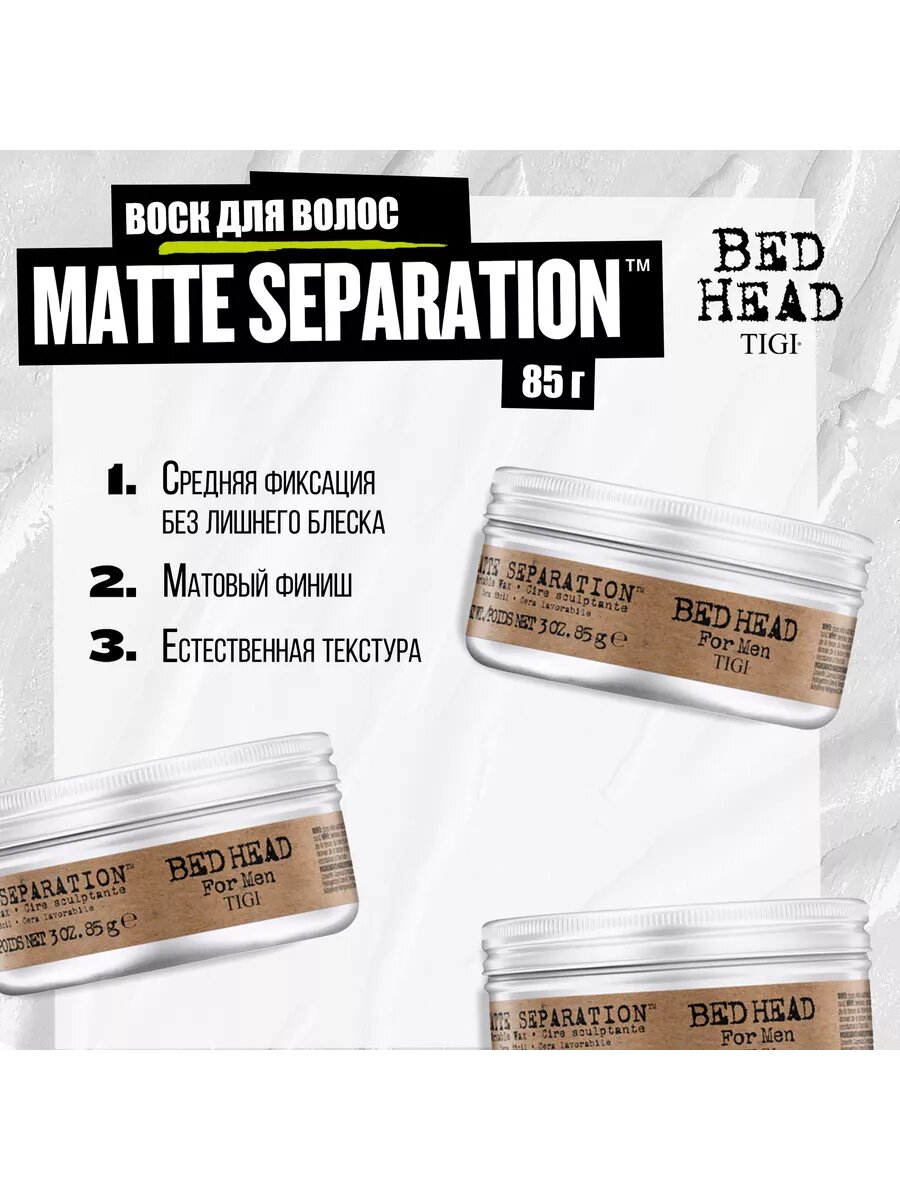 Купить TIGI BH FOR MEN Matte Separation — Воск для волос матирующий 85 мл с доставкой по всей России. TIGI BH FOR MEN Matte Separation — Воск для волос матирующий 85 мл: сравнение цен, характеристики, фото, актуальное наличие и цены.