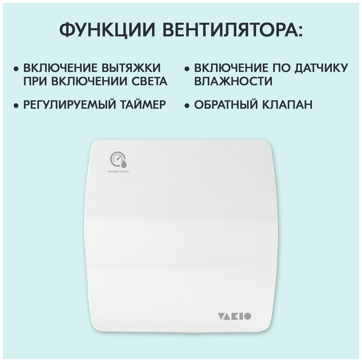 Тихий вентилятор вытяжной Vakio Smart EF-100 с датчиком влажности и таймером: сравнение цен, характеристики, фото, актуальное наличие и цены.