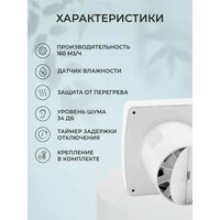 Тихий вентилятор вытяжной Vakio Smart EF-120 с датчиком влажности и таймером, белый: сравнение цен, характеристики, фото, актуальное наличие и цены.