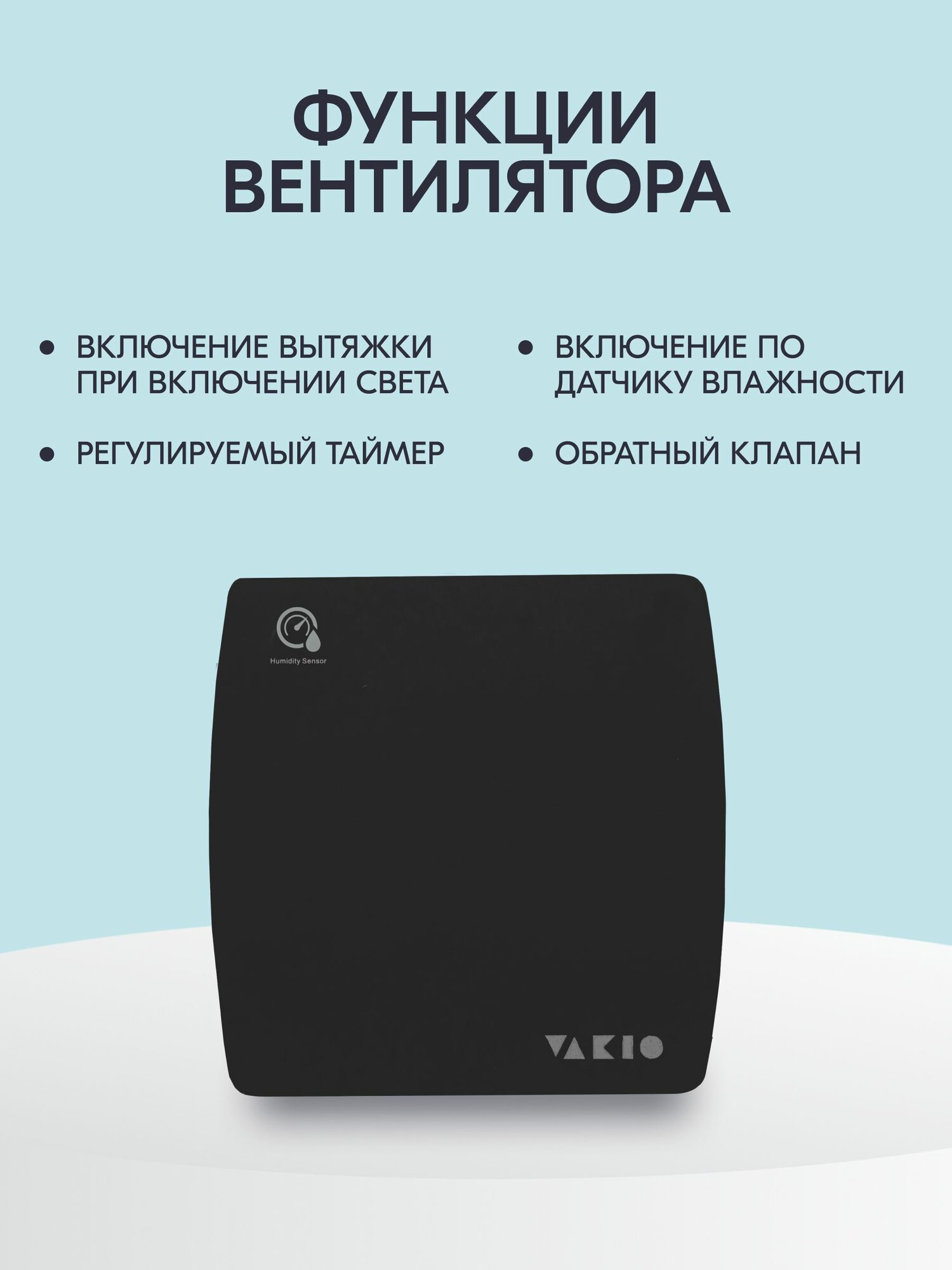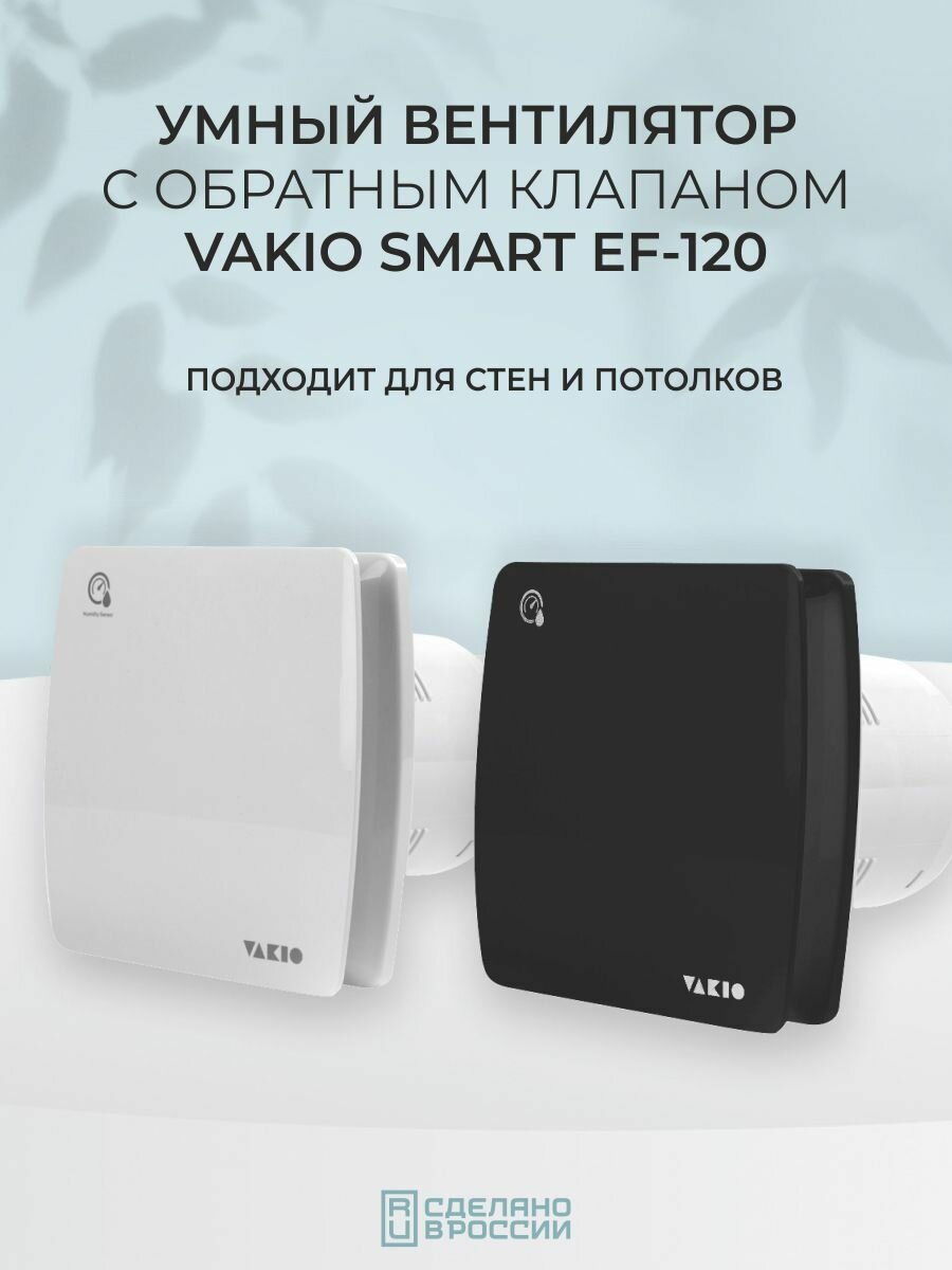 Тихий вентилятор вытяжной Vakio Smart EF-120 с датчиком влажности и таймером, черный: сравнение цен, характеристики, фото, актуальное наличие и цены.