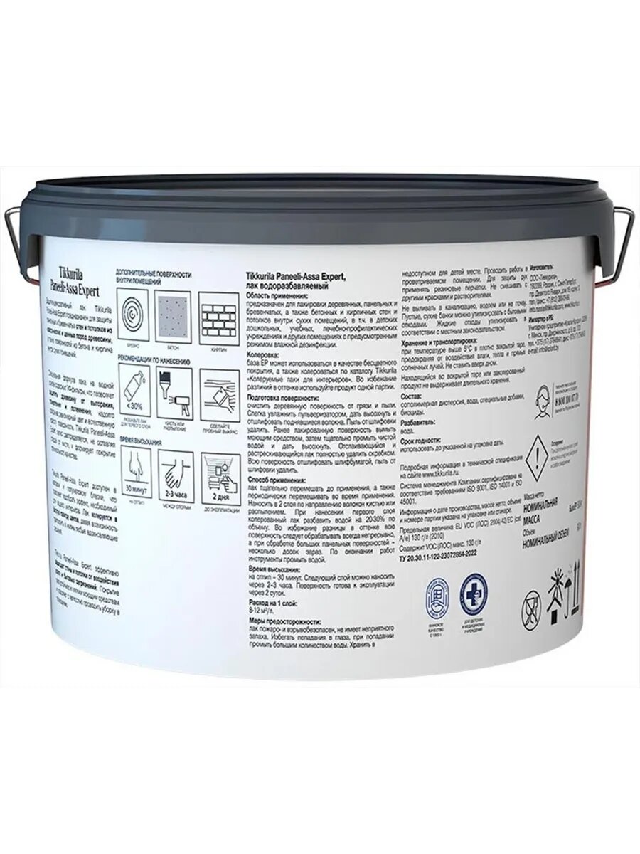 Лак интерьерный Paneeli-Assa Expert матовый 9 л: сравнение цен, характеристики, фото, актуальное наличие и цены.