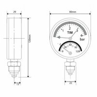 Термоманометр радиальный на 6 бар предназначен для измерения давления и температуры в бытовых гидравлических системах (отопления, водоснабжения). Указание по монтажу: Установка и демонтаж изделия должны производиться при отсутствии давления в системе. Муфтовые соединения необходимо выполнять с использованием уплотнительных материалов. Первоначально устанавливается автоматический запорный клапан, затем в него устанавливается термоманометр. Перед установкой термоманометра трубопровод должен быть очищен от окалины и ржавчины. Системы отопления, трубопроводы котельных по окончании их монтажа должны быть промыты водой. Термоманометр должен быть надежно закреплен, подтекание рабочей жидкости по резьбовой части не допускается. Диаметр корпуса: 80 мм Материал корпуса: сталь Материал штуцера: латунь Диаметр резьбы (подключение с клапаном): 1/2" Тип резьбы: наружная Подключение: радиальное Класс точности (давление): 2,5 Класс точности (температура): 2,0 Верхний предел измерений (ВПИ) давления: 6 Бар Давление постоянное: 75% ВПИ Давление переменное: 60% ВПИ Давление кратковременное: 100% ВПИ Диапазон измерения рабочей температры: от 0°C до +120°C Диапазон температур окружающей среды: от -20°C до +60°C