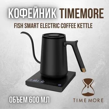 Timemore Электрический чайник Fish Smart 600ml, черный матовый: сравнение цен, характеристики, фото, актуальное наличие и цены.