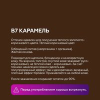B7 - «Карамель» пигмент для перманентного макияжа бровей. Тёплый коричневый цвет. Гибридный состав (неорганика + органика). Желтая основа. Подходит для шатенок, блондинок и на возрастную кожу. На жирной, толстой, смуглой коже заживает русо-коричневым, на тёплой коже - коричневым. За счёт техники нанесения можно сделать как полупрозрачный эффект, так и декоративно-визажный перманент.