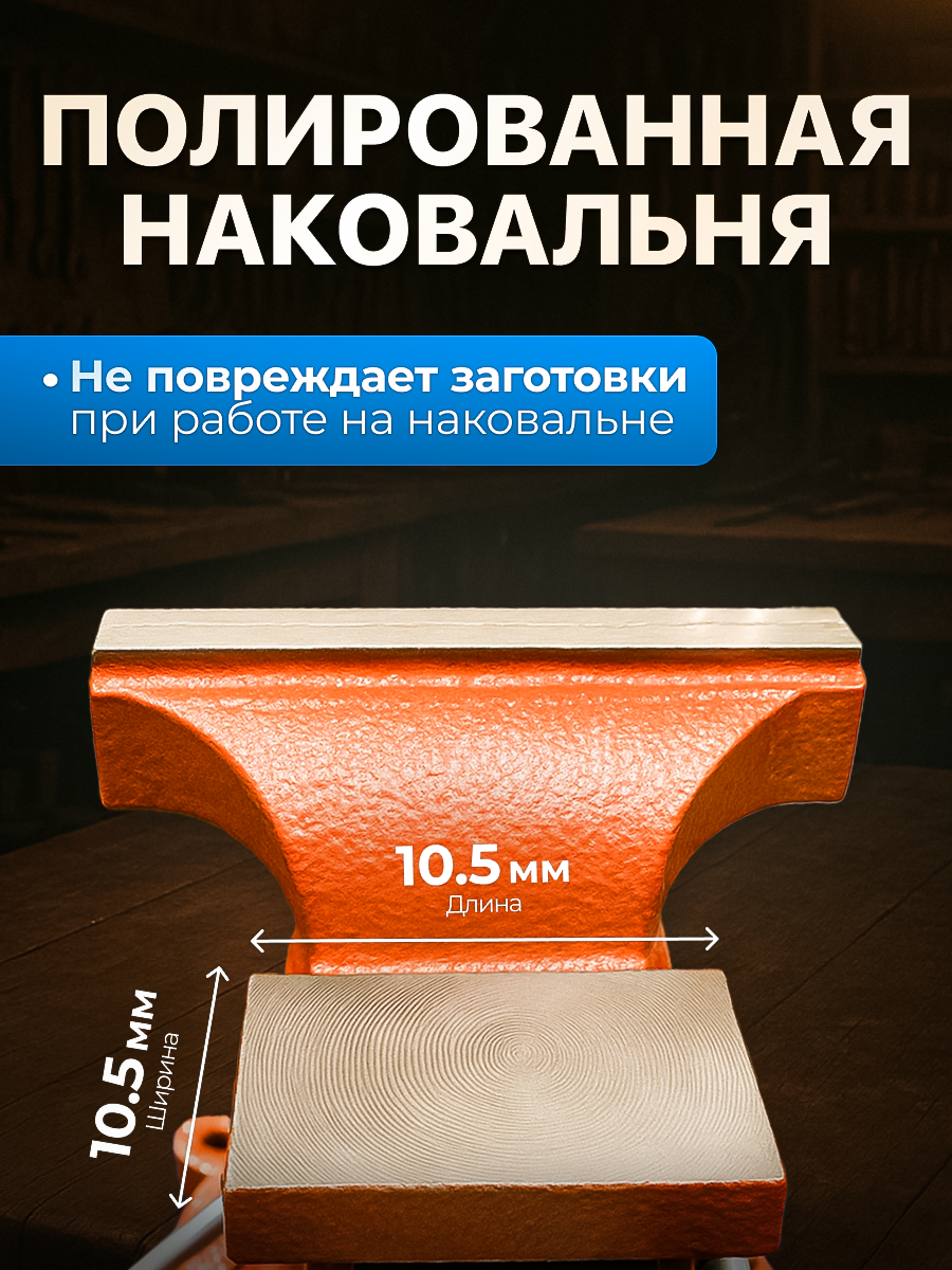 Вес тисков составляет всего 17 кг, что делает их удобными для транспортировки и хранения. Размер наковальни: 10,5x10,5 см. Диаметр отверстий для крепления к столу 10 мм.