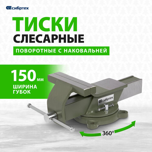 Тиски слесарные поворотные Сибртех, 150 мм ширина губок и 150 мм рабочий ход, стальной корпус и чугунное основание 18620: сравнение цен, характеристики, фото, актуальное наличие и цены.