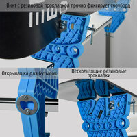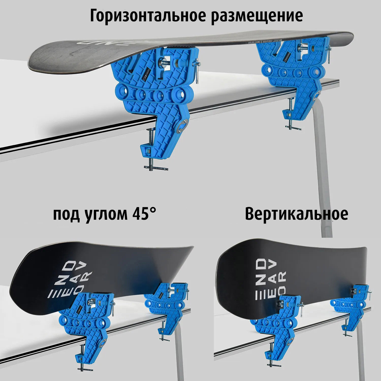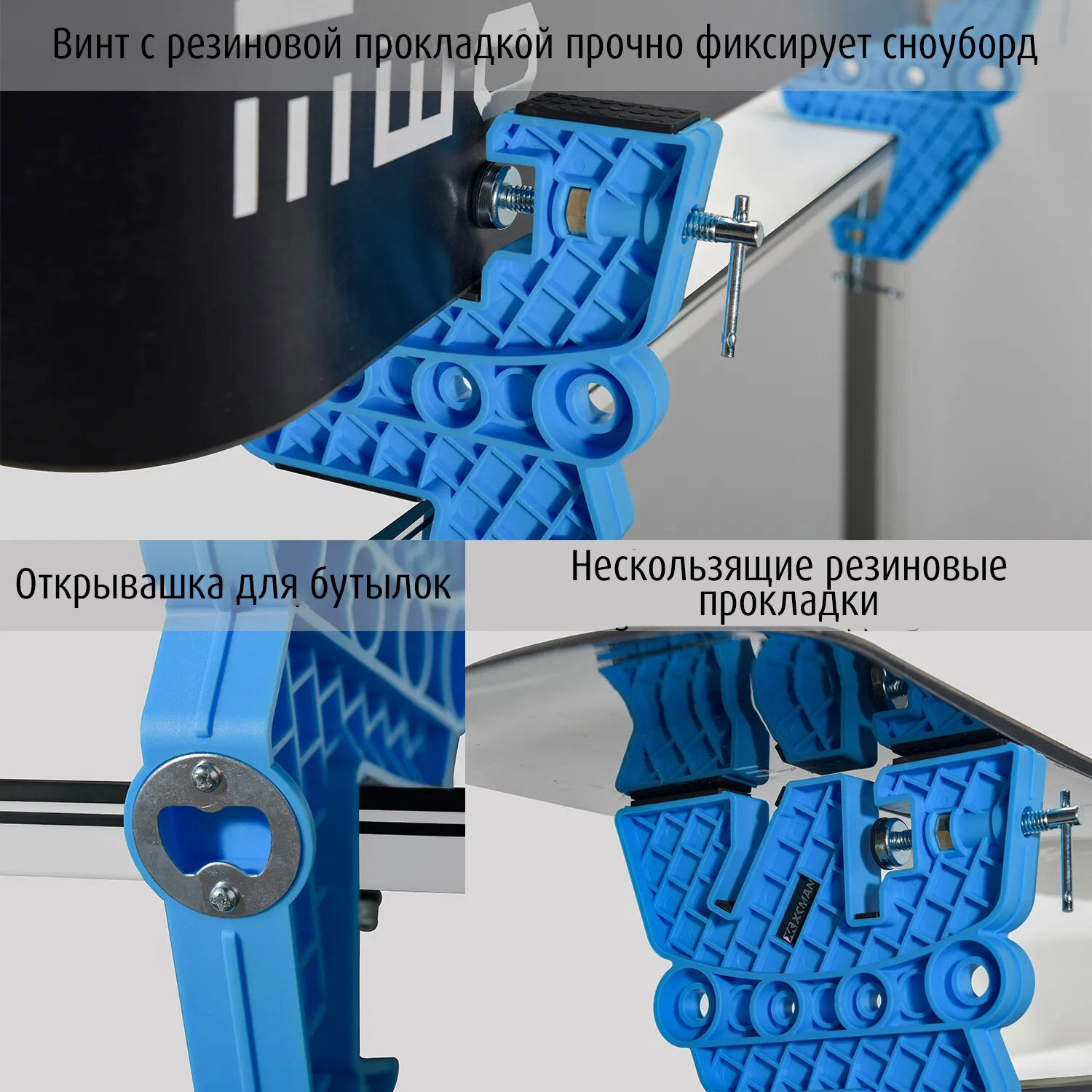 Тиски для сноуборда и горных лыж в комплекте с 2 скистопами. Возможность горизонтального, вертикального и 45° размещения. Ширина доски или фрирайдных лыж до 23 см Тиски крепятся струбцинами к верстаку или столу толщиной до 60 мм. Имеет нескользящие резиновые накладки на верхней части тисков Прочность и устойчивость: высокопрочная конструкция из инженерного пластика и резиновый материал конструкции обеспечивают прочность и устойчивость.