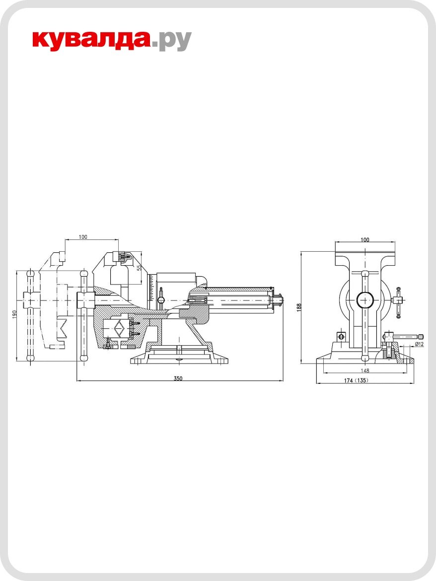 Тиски поворотные слесарные ЗУБР 32712-100, применяются для закрепления деталей при выполнении различного вида слесарных работ. Корпус и подвижная планка изготовлены из высококачественного чугуна. Цилиндрическая форма и закрытый корпус тисков обеспечивают плавный ход подвижной планки и отсутствие люфта. Сменные губки изготовлены из высококачественной инструментальной стали и закалены. На рабочую поверхность губок нанесены рифления для надежного и безопасного крепления деталей. Для закрепления труб и деталей круглой формы на корпусе тисков предусмотрены дополнительные губки. Поворотное основание позволяет перемещать корпус тисков в горизонтальной плоскости на угол от 0 до 360 градусов. Увеличенная наковальня на корпусе тисков для выполнения слесарных работ. Установка тисков на столе осуществляется при помощи винтов и гаек, для чего в основании предусмотрены отверстия.