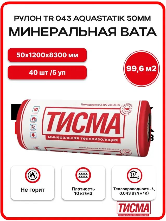 Тисма TR 043 Aquastatik 50 мм ( 5 РУЛ. / 99,6 м2 / 10 плит) минеральная вата, утеплитель для полов, перекрытий: сравнение цен, характеристики, фото, актуальное наличие и цены.