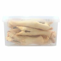 Лакомство содержит кожу, много кости, жира, колагеновой соединительной ткани и лишь прослойки мышечной ткани. Это обеспечивает не только удовольствие от поедания, но и пользу для здоровья собаки. Массирует десны, укрепляет жевательную мускулатуру, очищает зубной налет и предотвращает возникновение зубного камня.