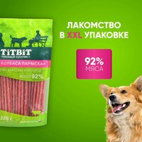 Артикул: 1799-858. Вес: 369 гр, Размер упаковки: 4.5 x 25 x 17 см, Темпер. ограничение НЕ выше ℃: +30, Темпер. ограничение НЕ ниже ℃: +1, Зоотовары с отдельным счётом: Да, Есть вет. справка: Да, Температурное ограничение: Нет, Вид лакомств: Колбаски, Вес, г: 350. Колбаса Пармская - это аппетитное угощение для собак всех пород. Благодаря высокому содержанию мяса (92%) и бережной технологии приготовления, имеет привлекательный внешний вид и вкус. Мясо и мясные субпродукты, входящие в основу колбасы, являются превосходным источником высококачественного животного белка, витаминов и минералов. Выгодная XXL упаковка с удобным замком zip-lock сохранит лакомство и продлит удовольствие Вашего любимца. Состав: мясо и мясные субпродукты (говядина 92%), растительные масла, мускатный орех, минеральные вещества, смесь токоферолов и экстракт розмарина. Пищевая ценность в 100 г: белки 60 г, жиры 16,5 г, зола 5,5 г, влага 18 грЭнергетическая ценность на 100 г: 389 ккал.