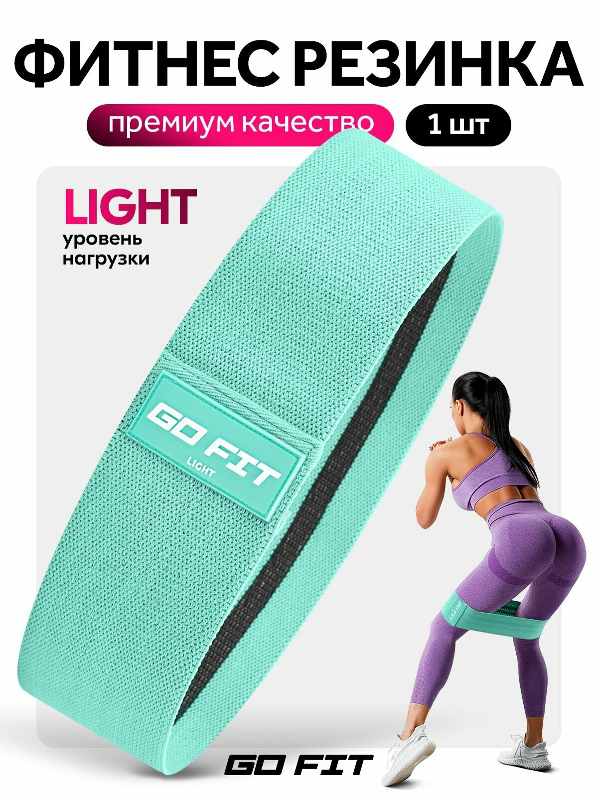 Тканевая фитнес резинка GO FIT Premium, спортивная резинка для фитнеса, йоги и пилатеса, бирюзовый, Light