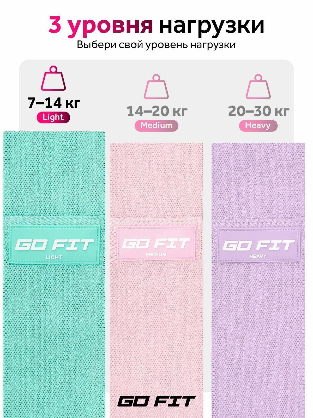 Купить Тканевая фитнес резинка GO FIT Premium, спортивная резинка для фитнеса, йоги и пилатеса, бирюзовый, Light с доставкой по всей России.
