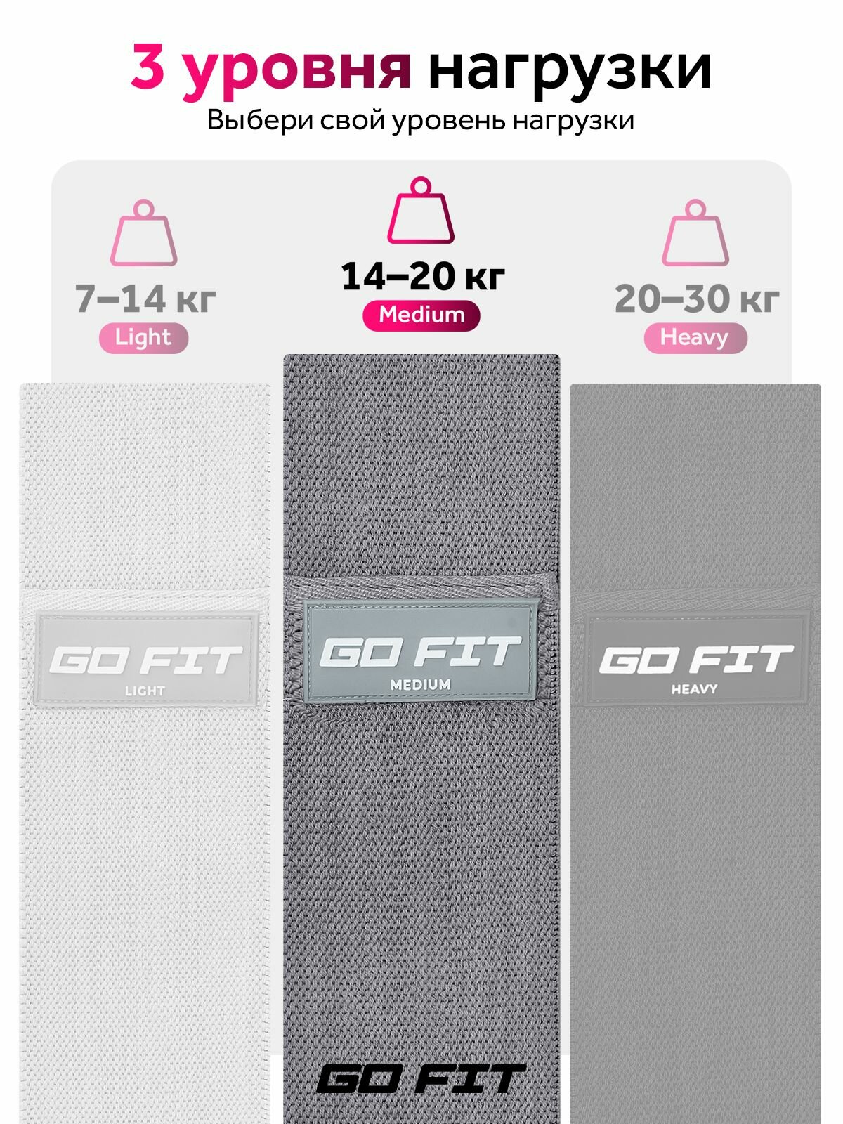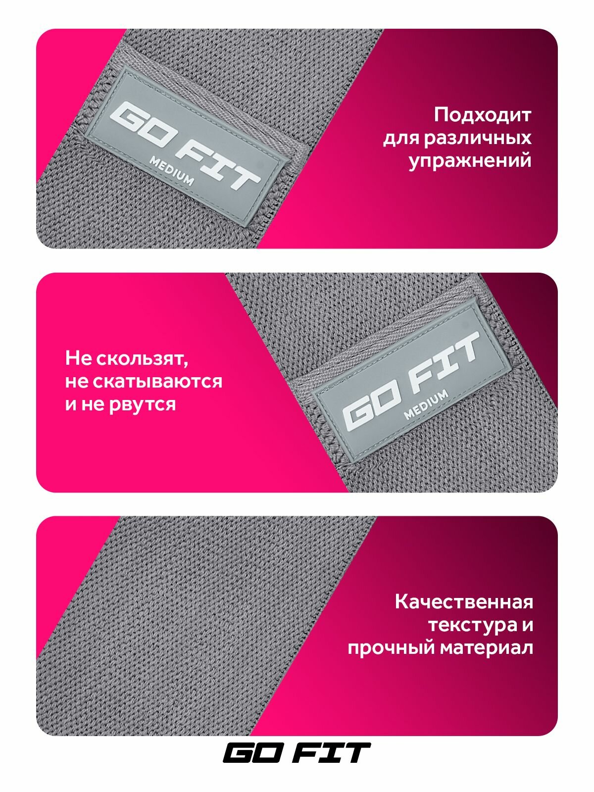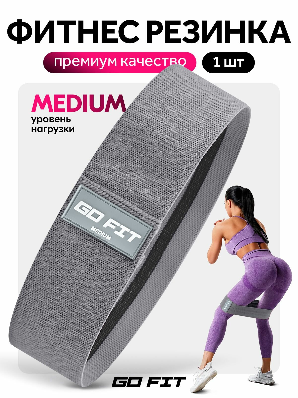 Тканевая фитнес резинка GO FIT Premium, спортивная резинка для фитнеса, йоги, пилатеса, эспандер, темно-серый, Medium: сравнение цен, характеристики, фото, актуальное наличие и цены.