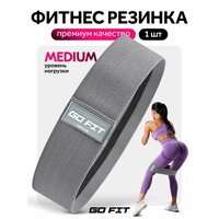Купить Тканевая фитнес резинка GO FIT Premium, спортивная резинка для фитнеса, йоги, пилатеса, эспандер, темно-серый, Medium с доставкой по всей России.