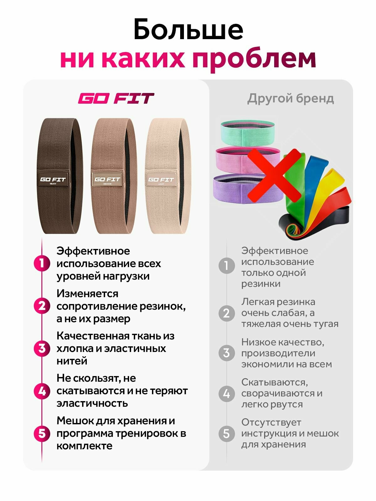 Тканевые фитнес-резинки GO FIT Premium, спортивные резинки для фитнеса, йоги и пилатеса, эспандер ленточный, эластичная лента, мешочек для хранения и программа тренировок, набор 3 штуки, Light Brown: сравнение цен, характеристики, фото, актуальное наличие и цены.