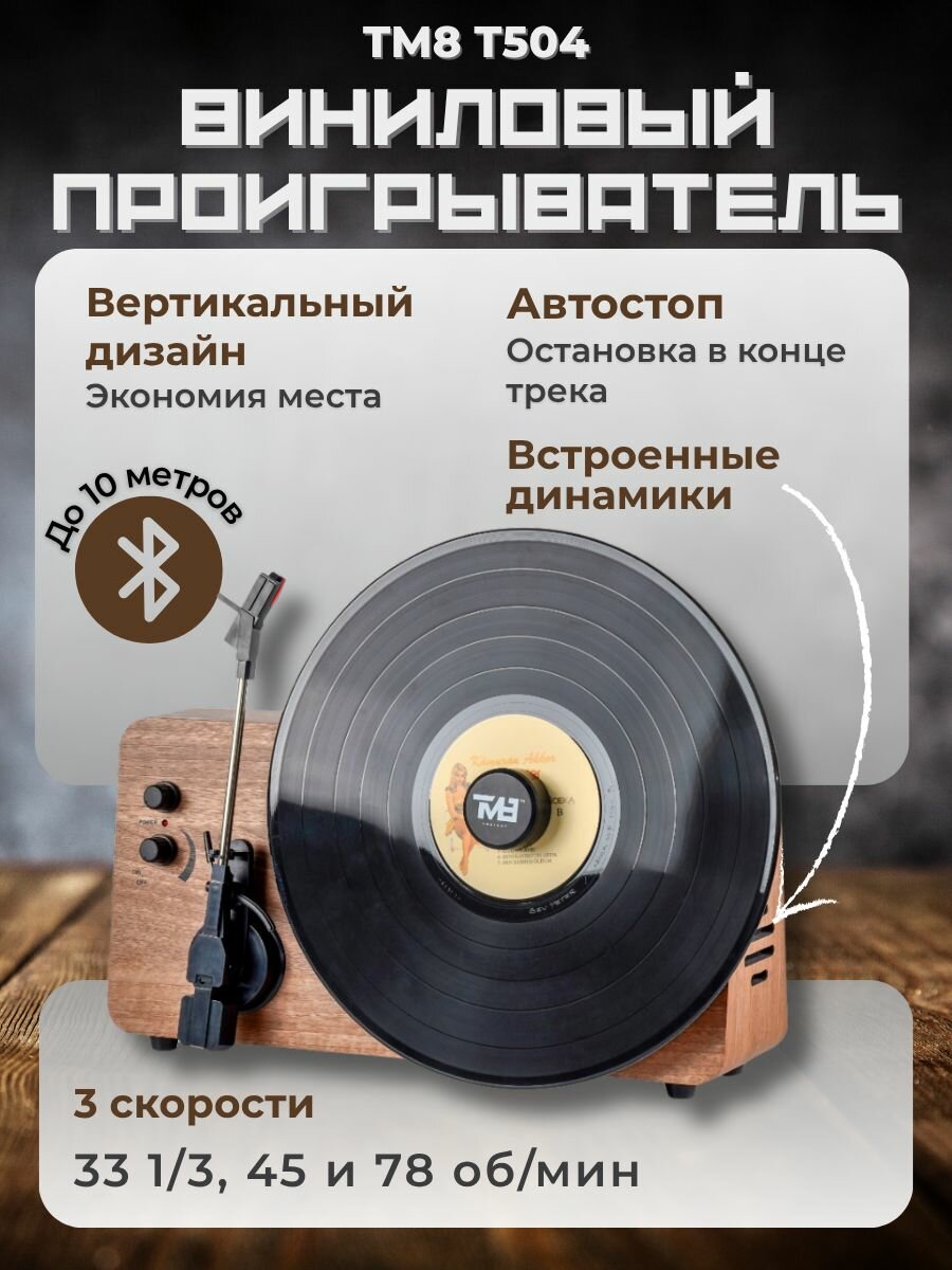 TM8 проигрыватель виниловых пластинок T504 с Bluetooth и автостопом, вертикальный дизайн: сравнение цен, характеристики, фото, актуальное наличие и цены.