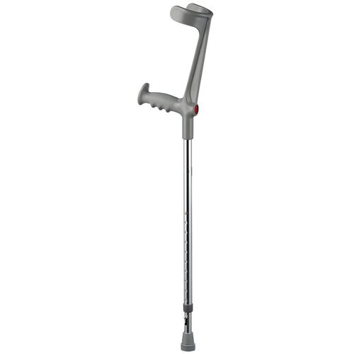 отрегулируйте высоту костыля так, чтобы манжета располагалась выше острой точки локтя на: 5 см при небольшом росте (около 150–160 см), 7 см при среднем росте (170–180 см), 10 см при росте 180 см и выше