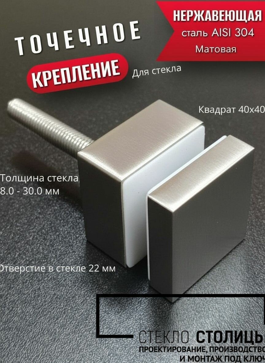 Купить Точечный стеклодержатель 40х40мм, стекло 8.0-30.0 мм, резьба под шпильку М10, AISI 304, шлифованный с доставкой по всей России. Точечный стеклодержатель 40х40мм, стекло 8.0-30.0 мм, резьба под шпильку М10, AISI 304, шлифованный: сравнение цен, характеристики, фото, актуальное наличие и цены.