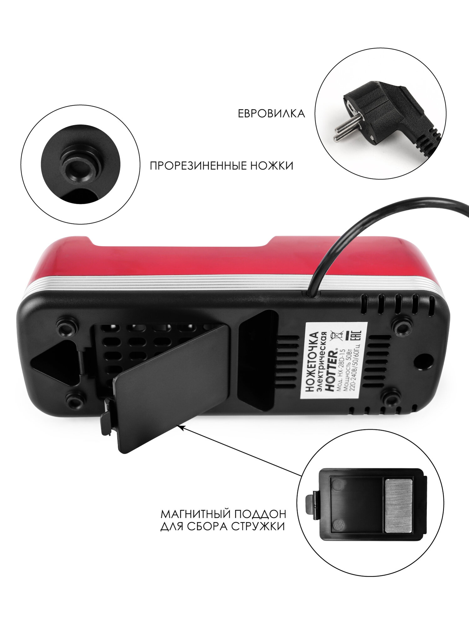 Купить Точилка для ножей электрическая HOTTER HX-28D-15 с тремя слотами, красная с доставкой по всей России. Точилка для ножей электрическая HOTTER HX-28D-15 с тремя слотами, красная: сравнение цен, характеристики, фото, актуальное наличие и цены.