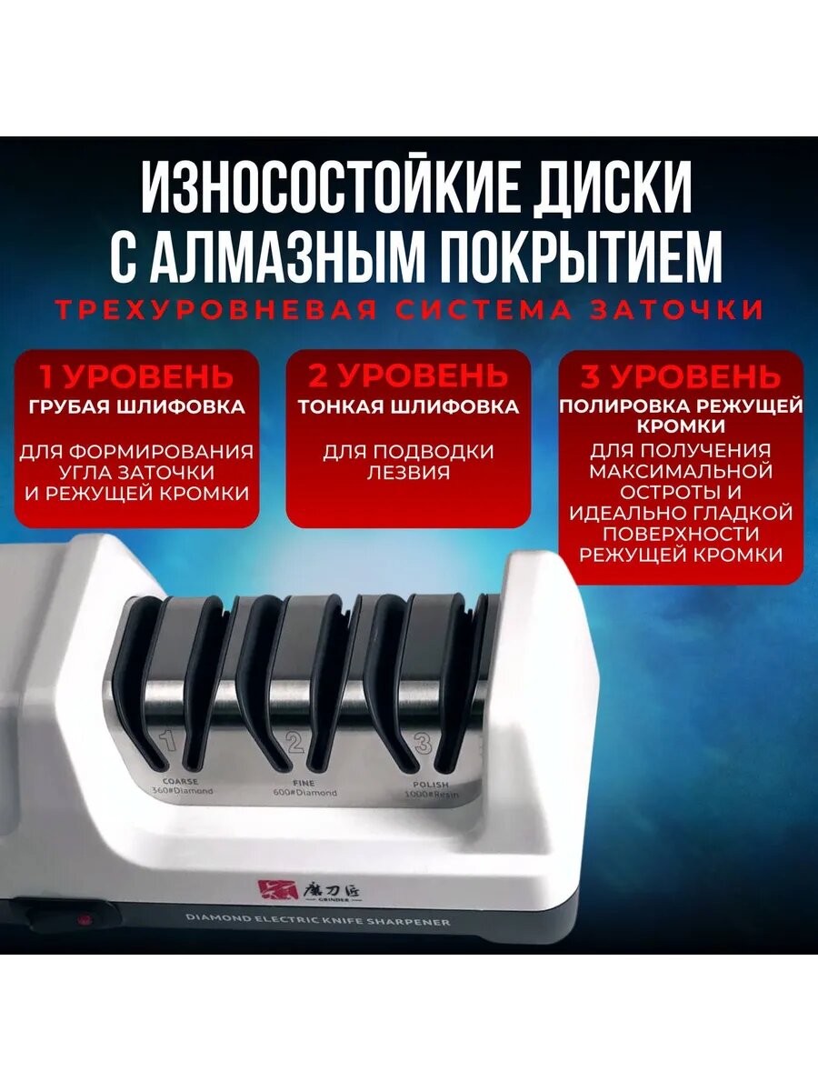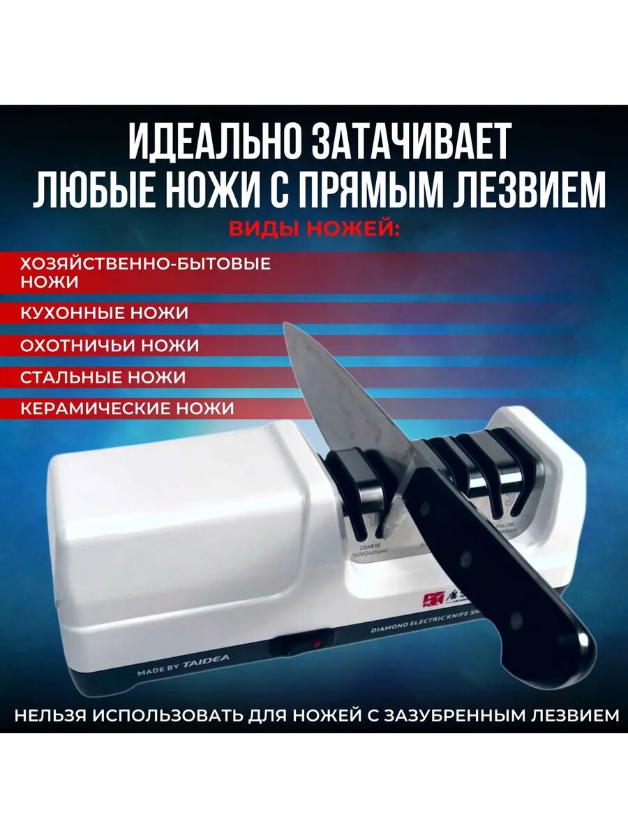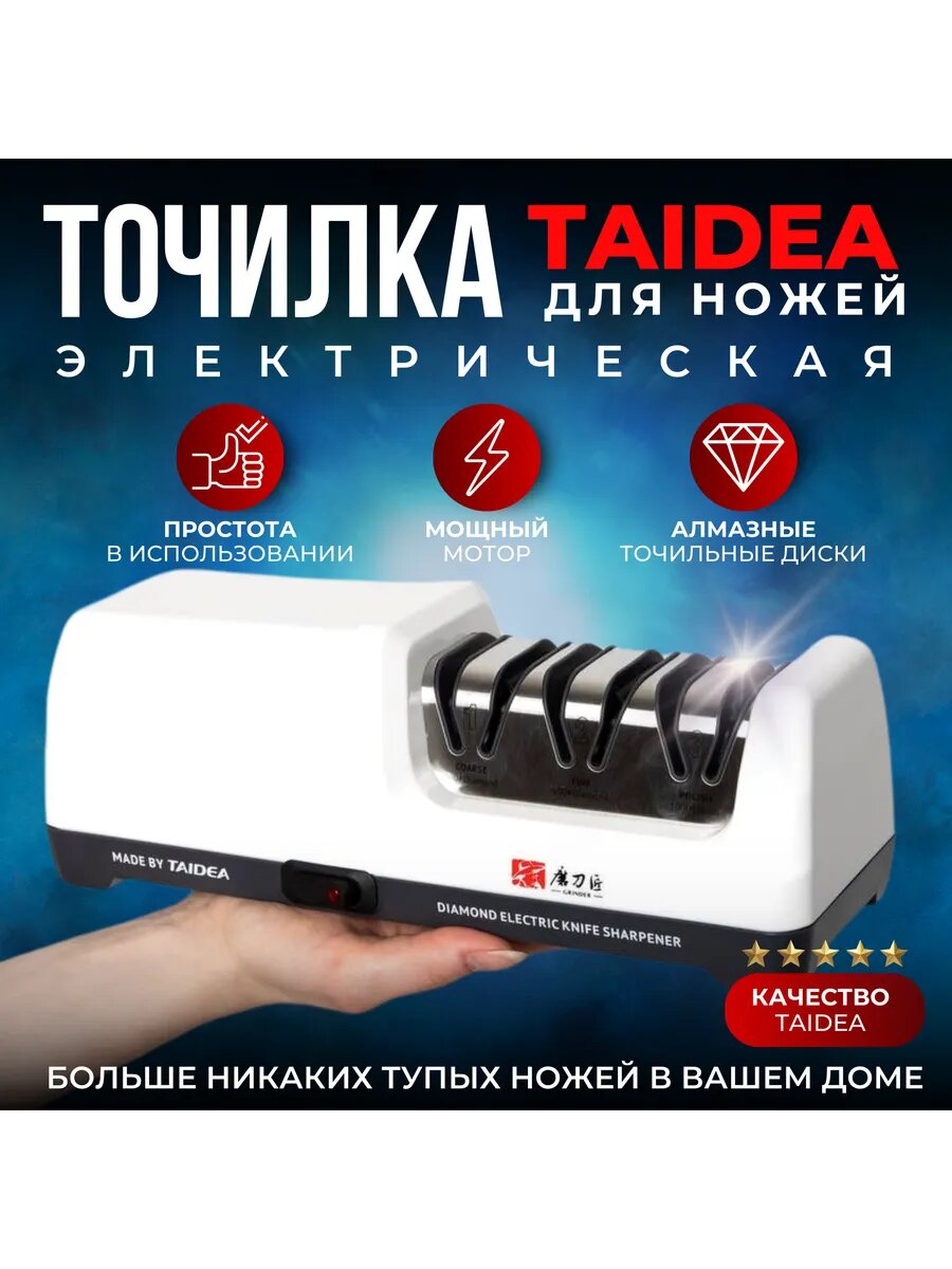 Купить Точилка для ножей, электрическая ножеточка Taidea, алмазное покрытие, 3 уровня заточки с доставкой по всей России. Точилка для ножей, электрическая ножеточка Taidea, алмазное покрытие, 3 уровня заточки: сравнение цен, характеристики, фото, актуальное наличие и цены.