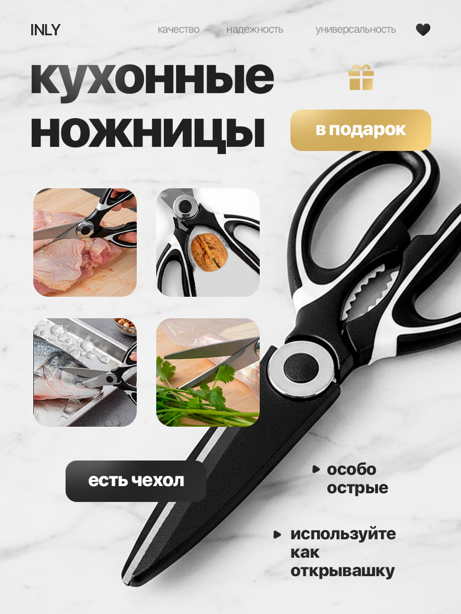 Набор кухонных ножей INLY 5 шт, из нержавеющей стали с литой ручкой с точилкой и ножницами