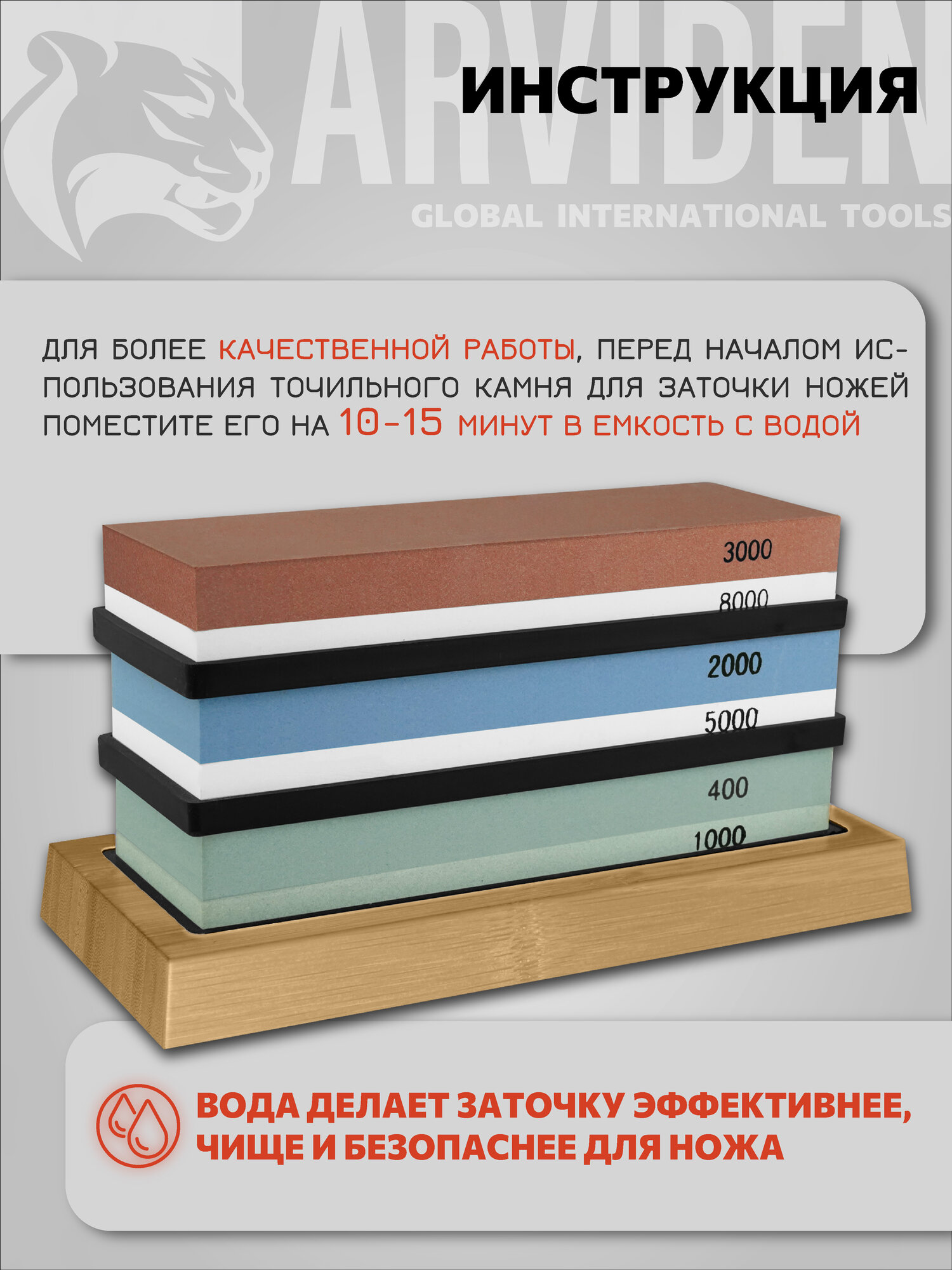 Купить Точильный камень для ножей, 9 предметов, ARVIDEN, 6 степеней заточки, водный с бруском и держателем с доставкой по всей России.