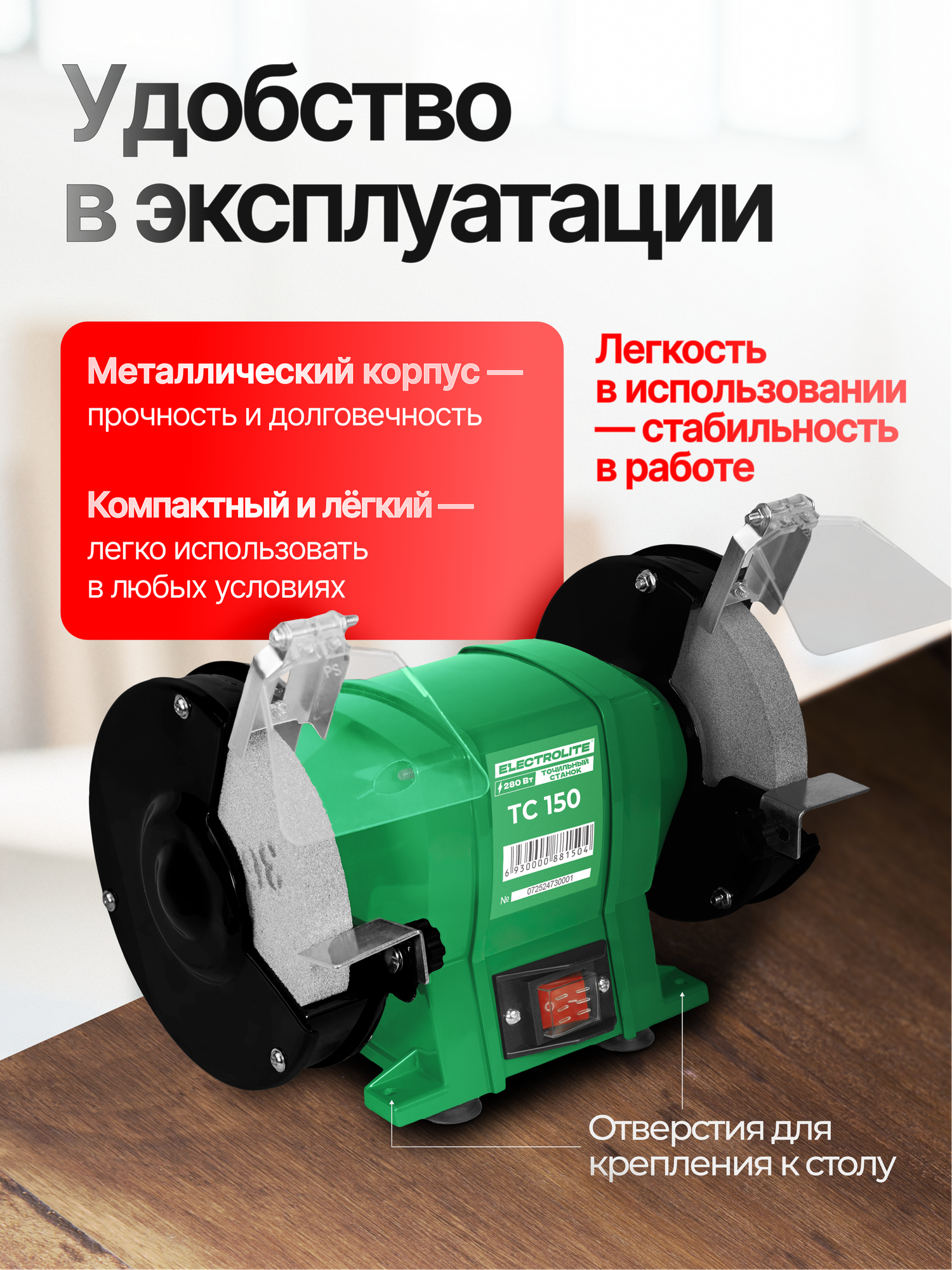 Точильный станок Electrolite ТС 150, электрический, держатель, 150мм, 2 абразивных камня: сравнение цен, характеристики, фото, актуальное наличие и цены.