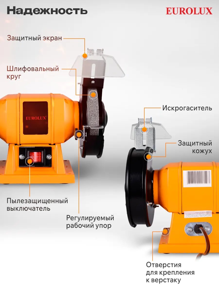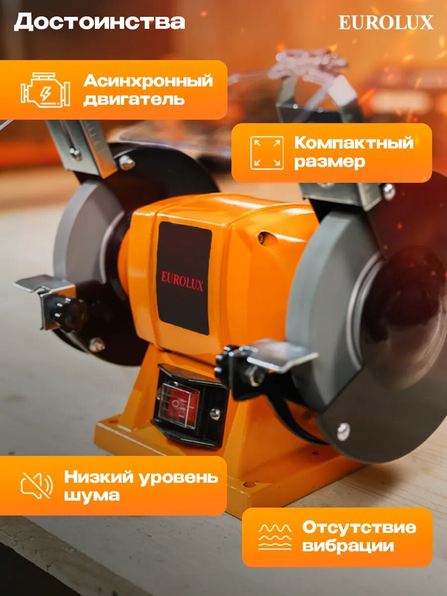 Купить Точильный станок Eurolux ТС-200EU, 150 Вт, 2950 об/мин, 12.7 мм с доставкой по всей России.