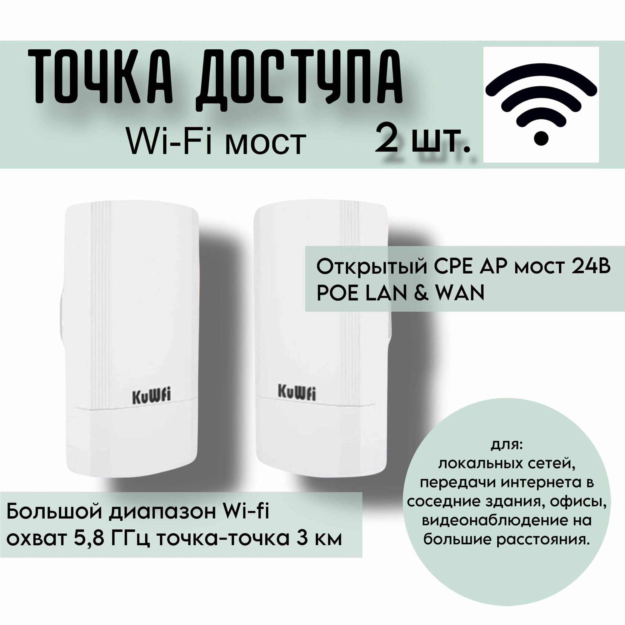 Купить Точка доступа Wi-Fi мост KUWFi CPE131, 5.8 Ггц 900МБ/сек с доставкой по всей России. Точка доступа Wi-Fi мост KUWFi CPE131, 5.8 Ггц 900МБ/сек: сравнение цен, характеристики, фото, актуальное наличие и цены.