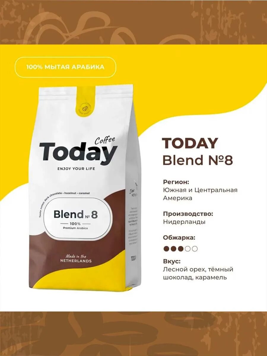 TODAY Blend № 8 кофе в зернах, 800 г 2 пакета: сравнение цен, характеристики, фото, актуальное наличие и цены.