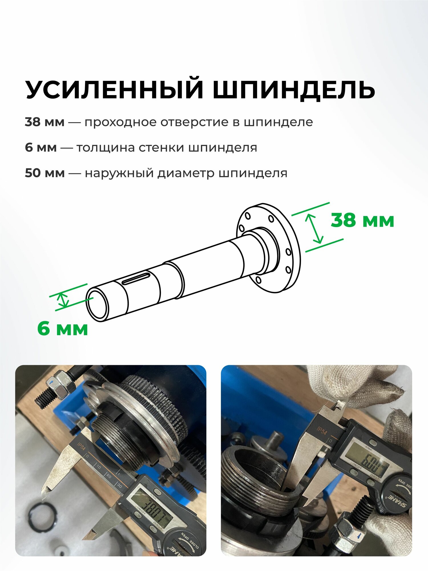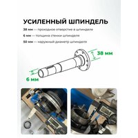 Отличительной особенностью данной серии F является усиленный шпиндель с толщиной стенки 6 мм и проходным отверстием 38 мм, бесколлекторный двигатель увеличенной мощности с плавной бесступенчатой регулировкой оборотов, яркий светодиодный индикатор оборотов и концевой выключатель защитного кожуха патрона, отключающий питание станка при поднятии кожуха.