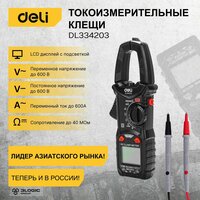Токоизмерительные цифровые клещи DELI DL334203 102980 используются для измерения переменного тока, постоянного и переменного напряжения и сопротивления.
