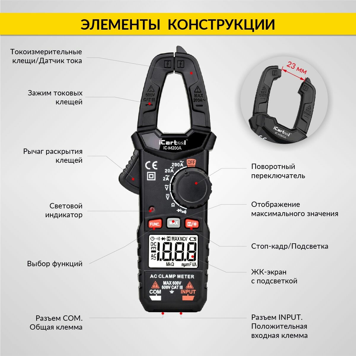 Купить Токовые клещи переменного тока 200A iCartool IC-M200A с доставкой по всей России. Токовые клещи переменного тока 200A iCartool IC-M200A: сравнение цен, характеристики, фото, актуальное наличие и цены.
