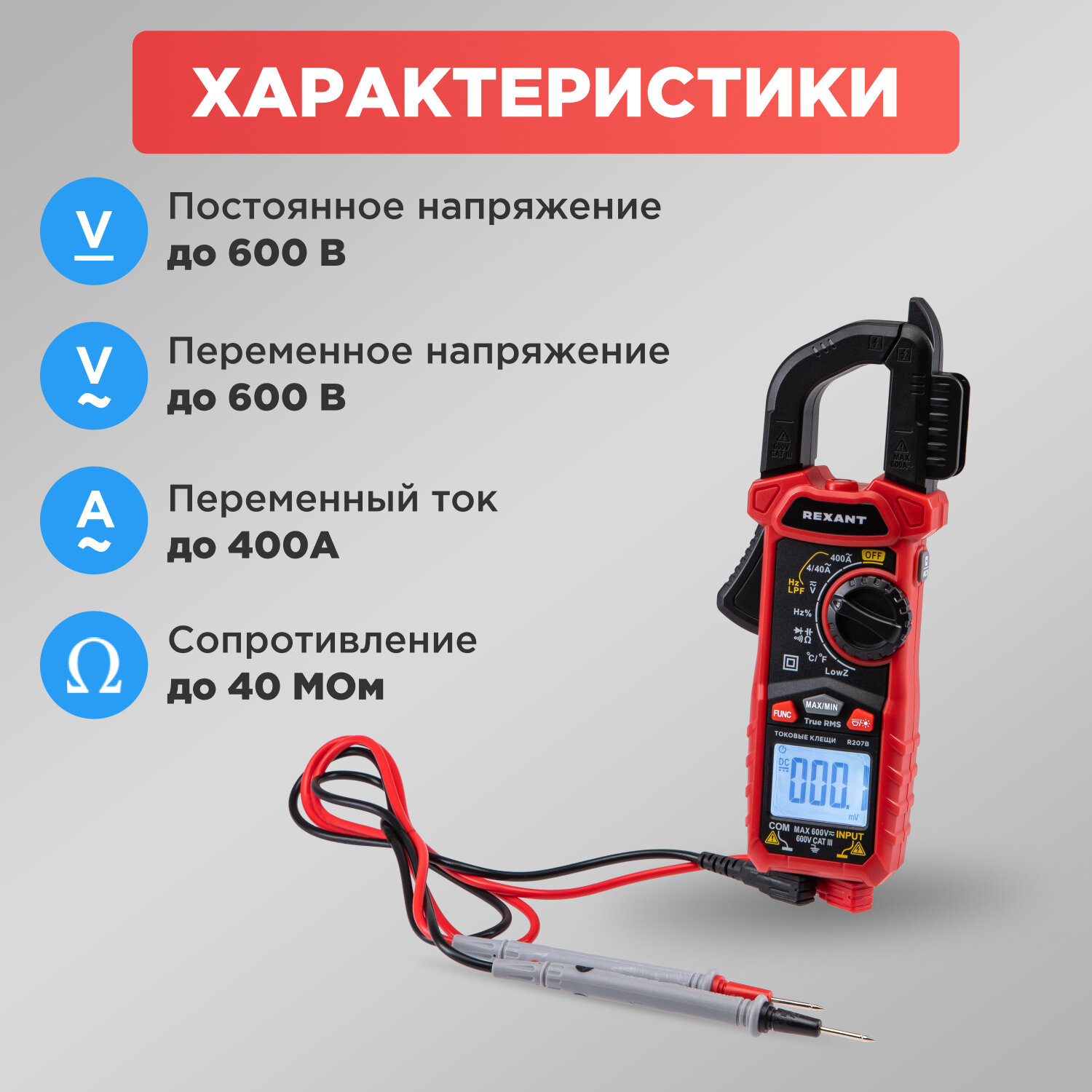 Купить Токовые клещи REXANT R207B, для измерения силы переменного и постоянного тока с доставкой по всей России. Токовые клещи REXANT R207B, для измерения силы переменного и постоянного тока: сравнение цен, характеристики, фото, актуальное наличие и цены.