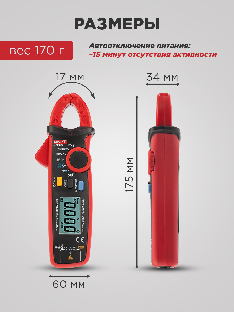 Клещи токоизмерительные UNI-T UT210E – это высококачественный и многофункциональный инструмент, предназначенный для точных измерений различных электрических параметров, включая ток, напряжение, сопротивление и другие параметры. Эти клещи идеально подходят для использования как в бытовых, так и в профессиональных условиях, предлагая отличную точность и надежность при измерениях. Встроенные функции и компактный дизайн делают UNI-T UT210E не только удобным, но и высокоэффективным инструментом для работы с электрическими и электронными системами различных уровней сложности.